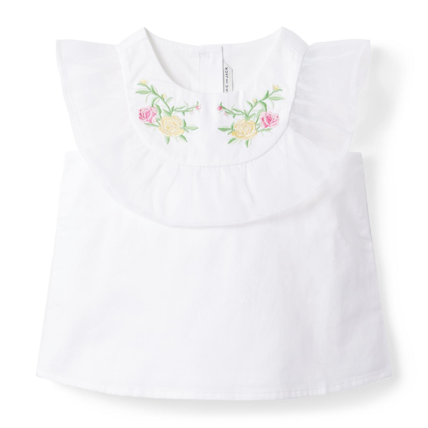 Embroidered Organza Ruffle Top