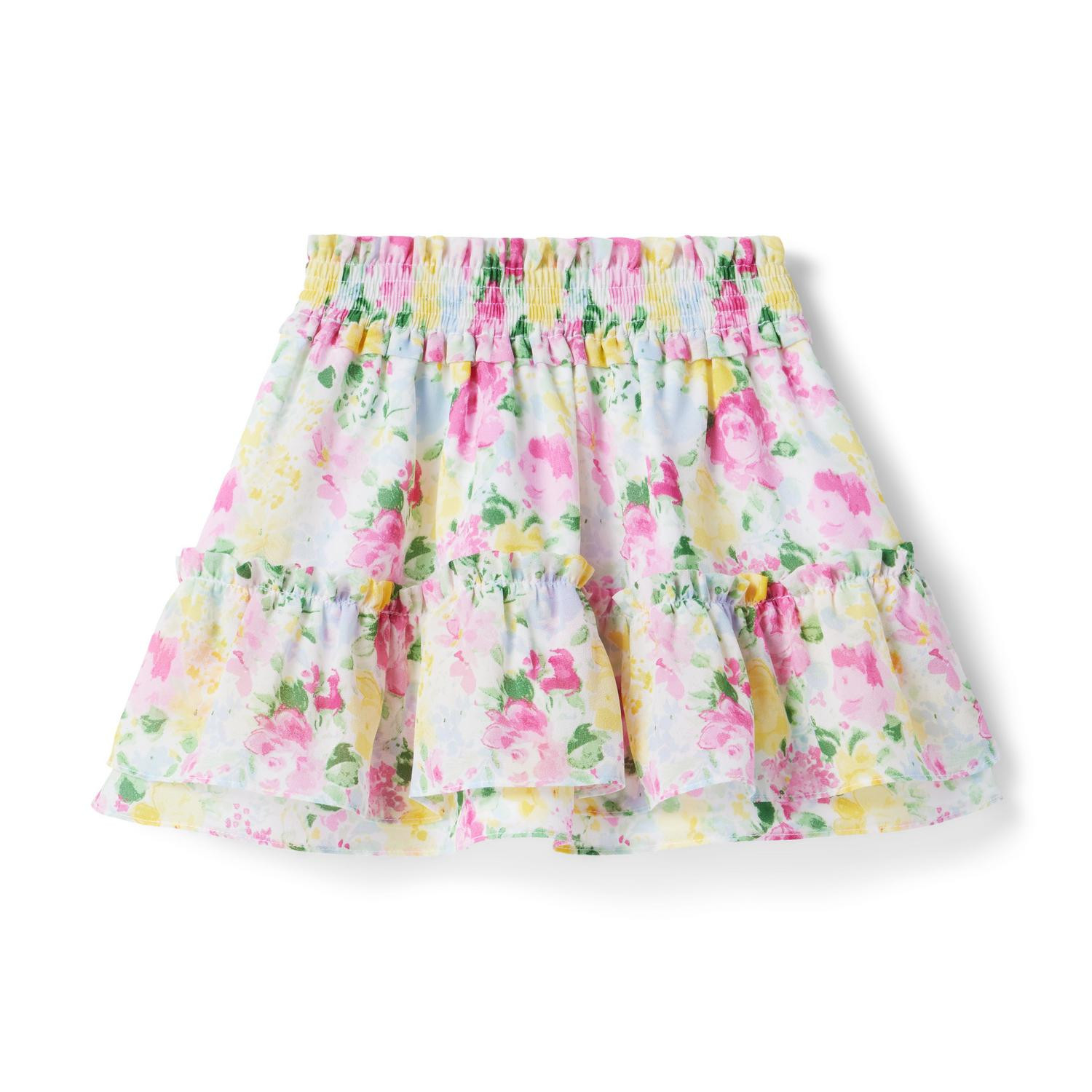 Floral Smocked Chiffon Skirt