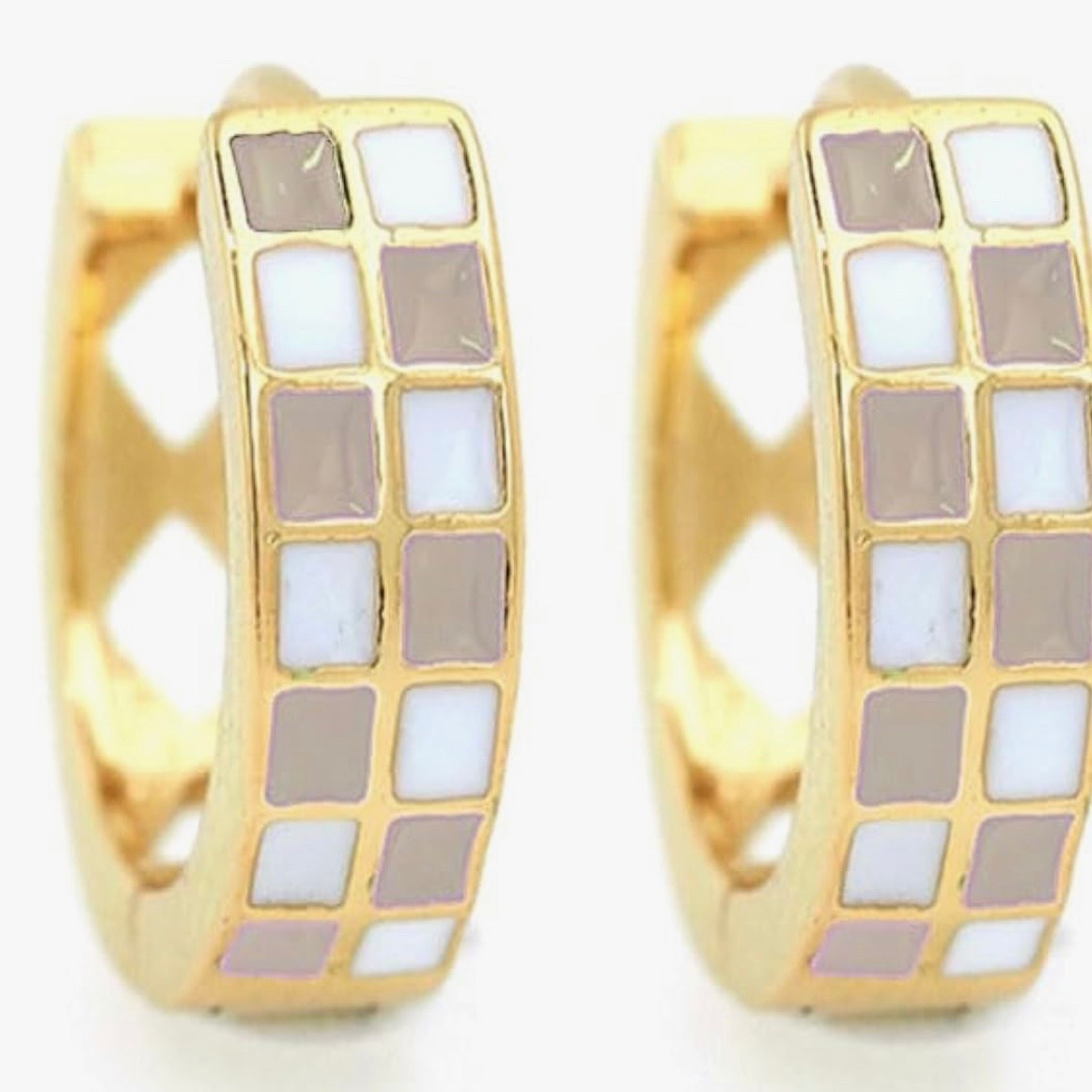 Checkered Earring For Women, Dainty Circle Checker Hoop Earrings, 18K Gold Plated Filled Enamel C... | Amazon (US)