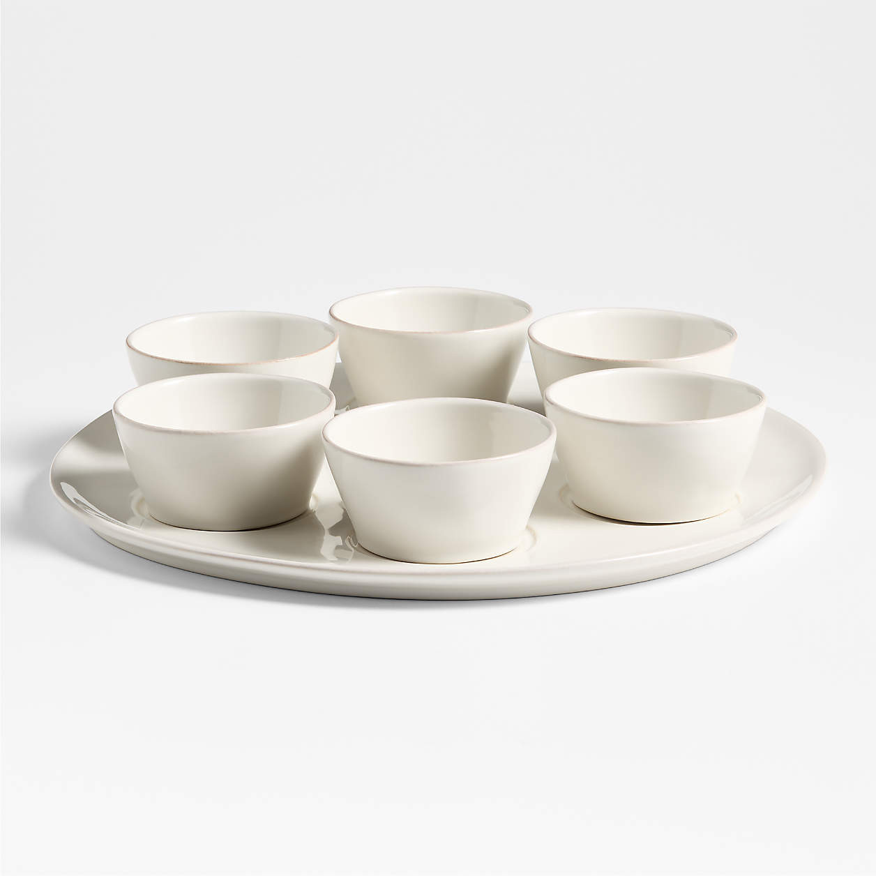 Marin White Stoneware Seder Platter with Six Mini Bowls + Reviews | Crate & Barrel