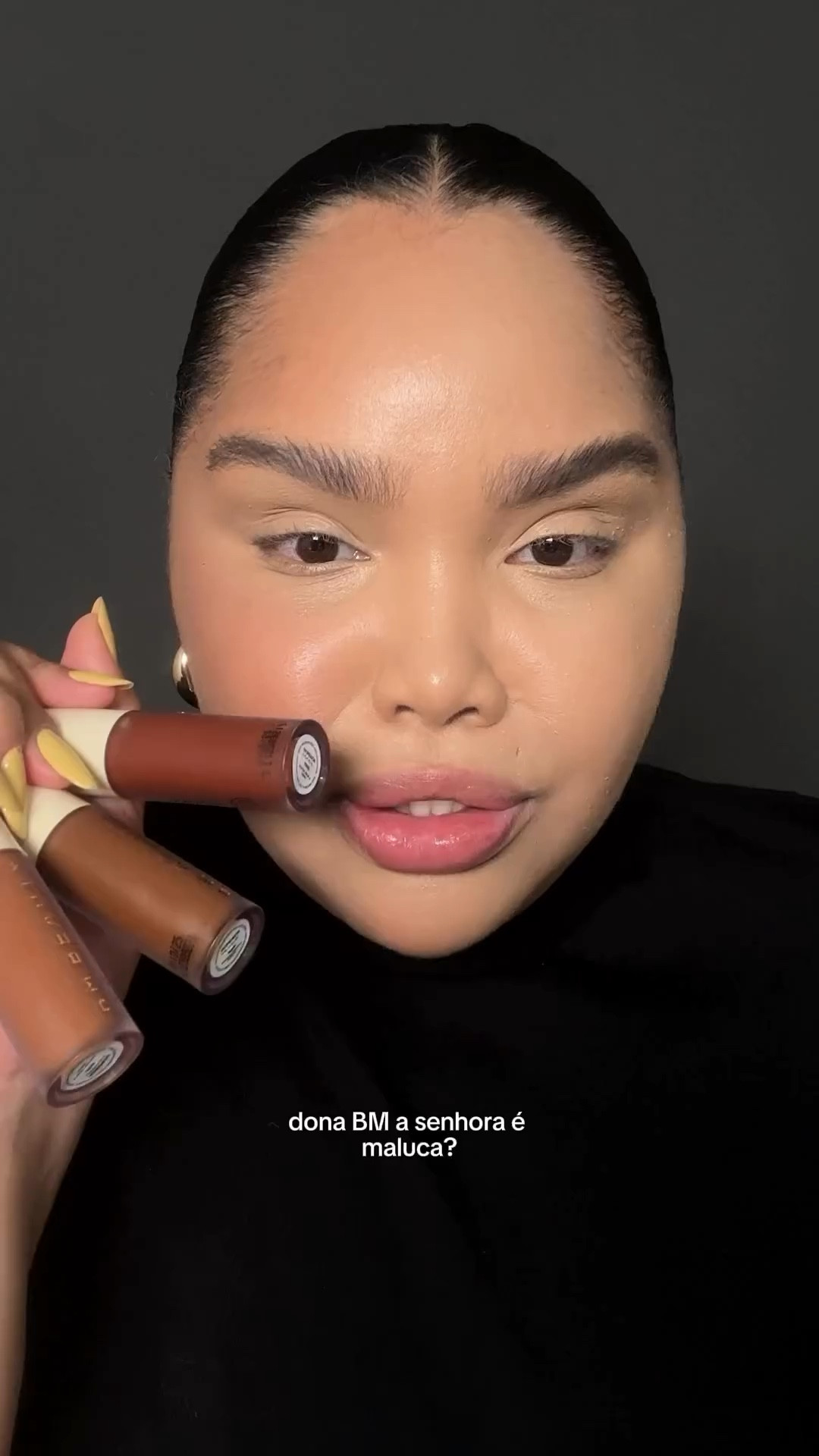 • nos lábios batom líquido BRUNA