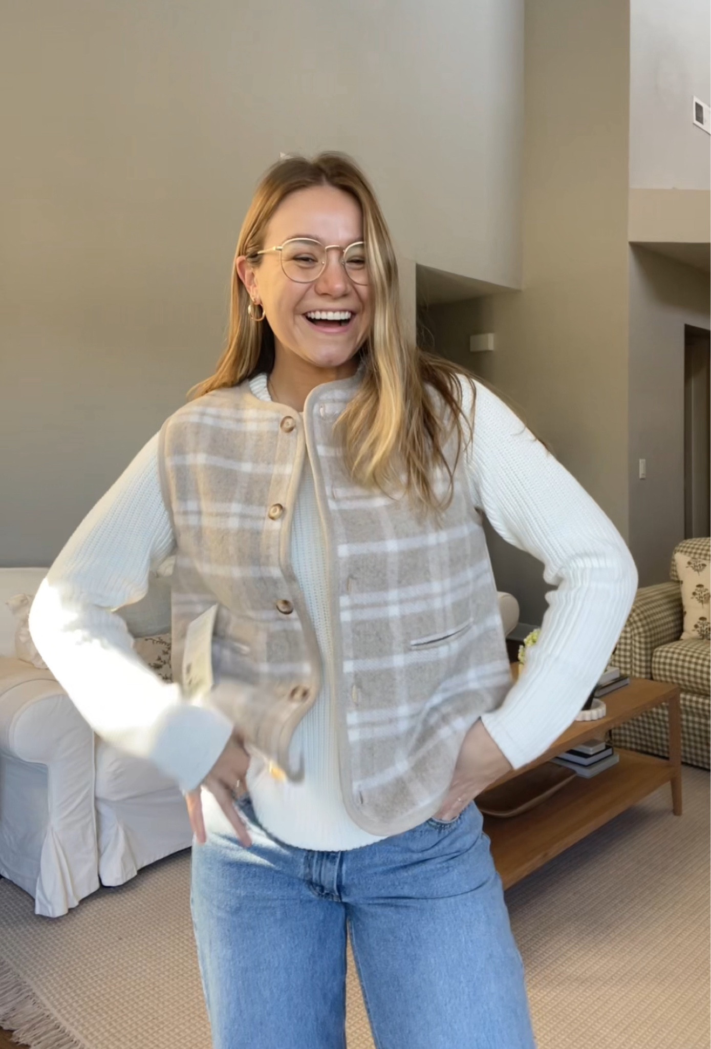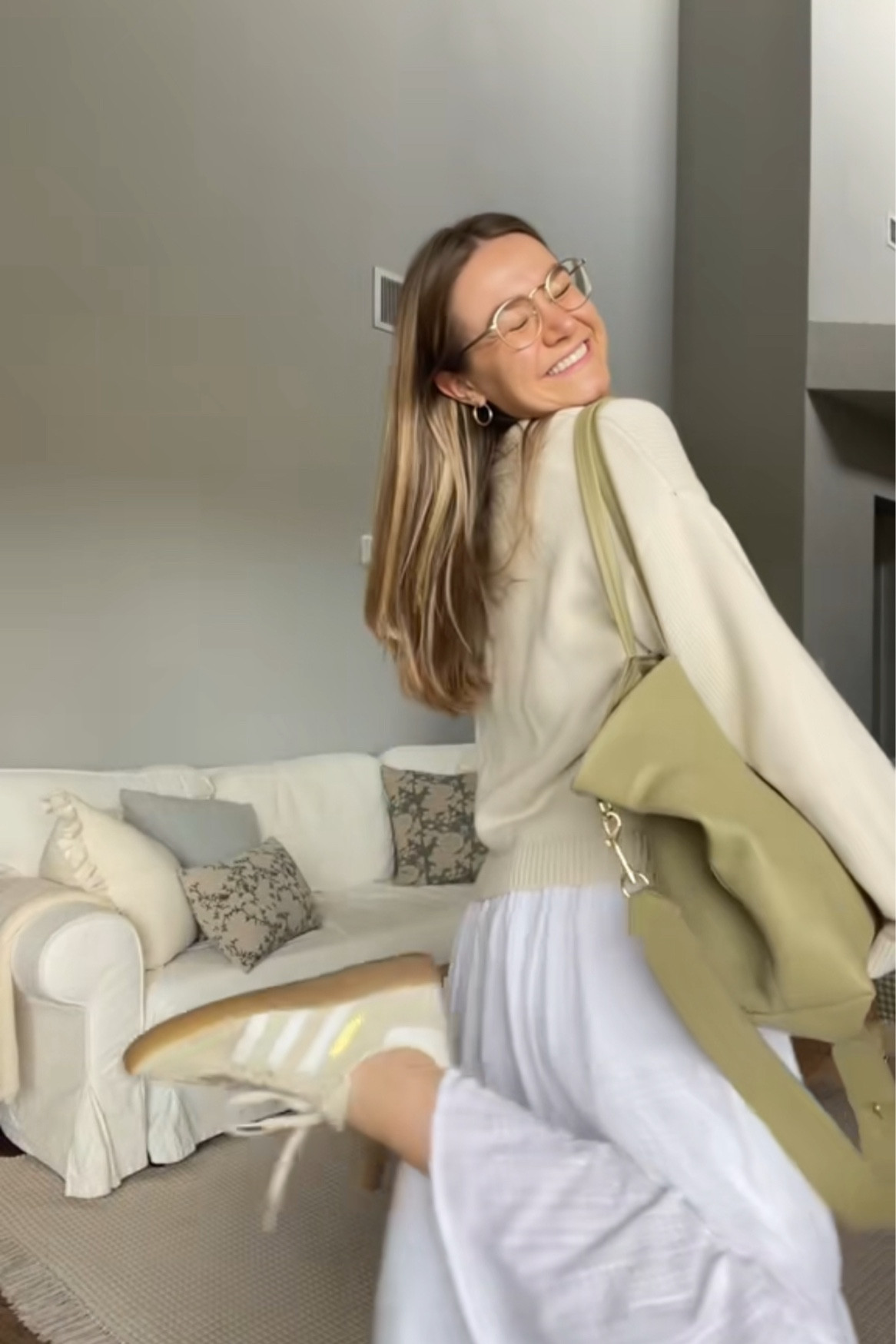 White cardigan is old navy, wearing medium. Green cardigan is sezane, wearing size medium (it is itchy at first but lessens over time). Jeans are Levi’s dad jeans, wearing TTS 27. Shoes are Franco Sarto. Glasses are Eyebuydirect