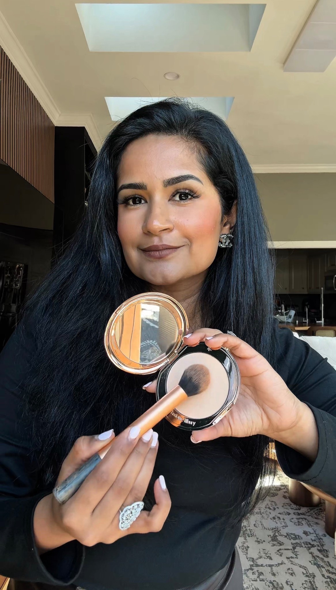 Full face of makeup glam featuring a bold red lip!