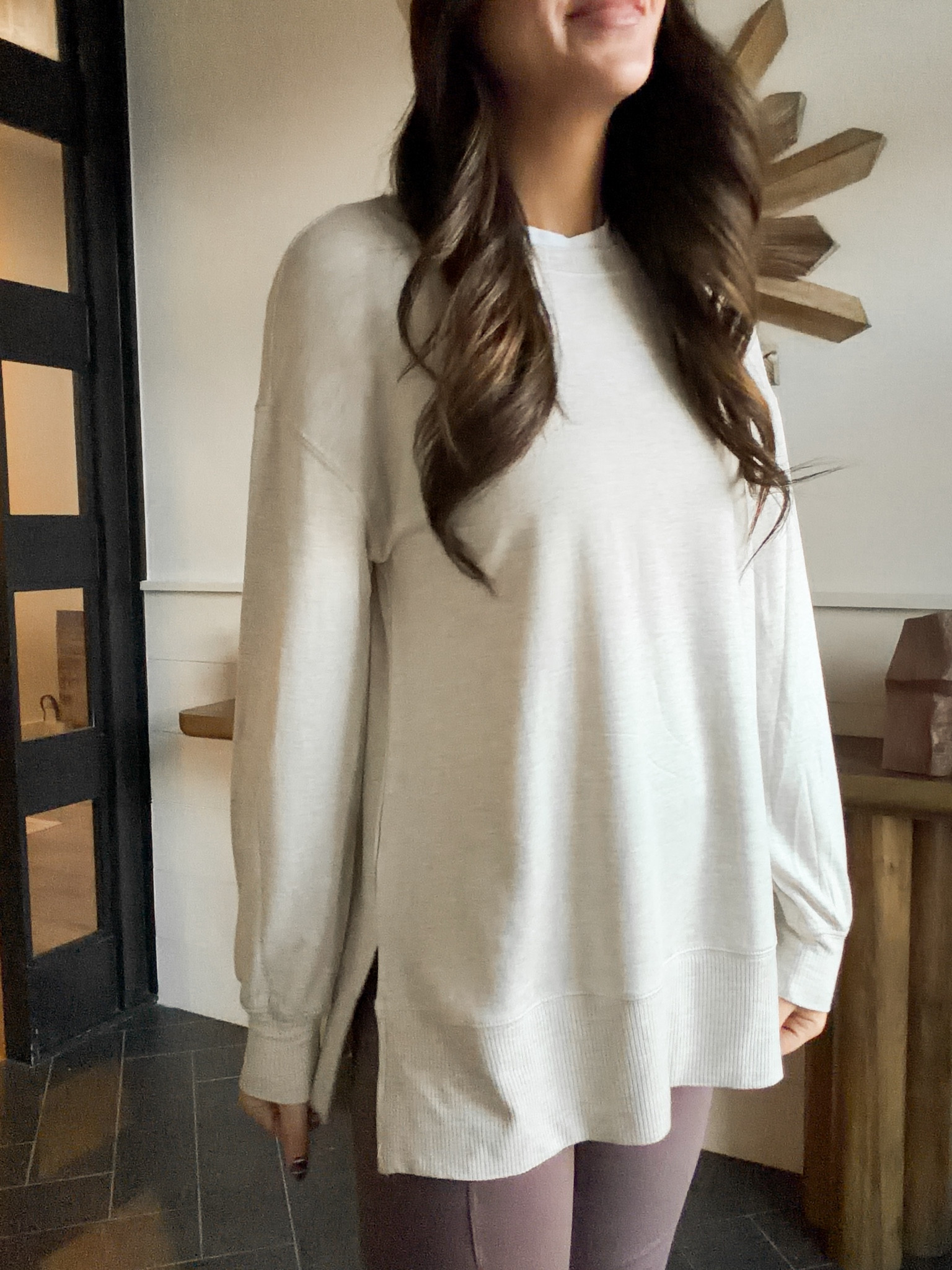 The softest Alo set! Loving this material. Great to work out in or just lounge around the house. Also could pair with sweatpants for extra warmth in winter.