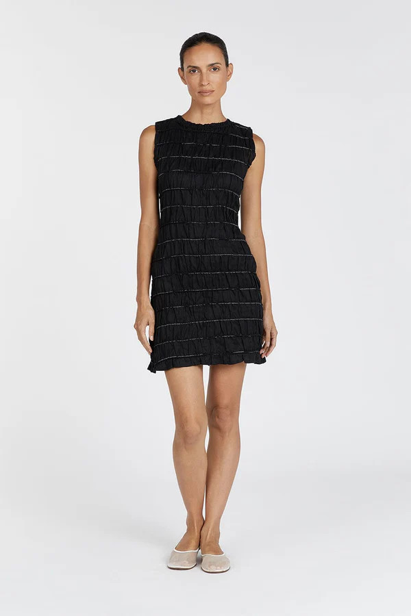 DAVINA BLACK SHIRRED MINI DRESS