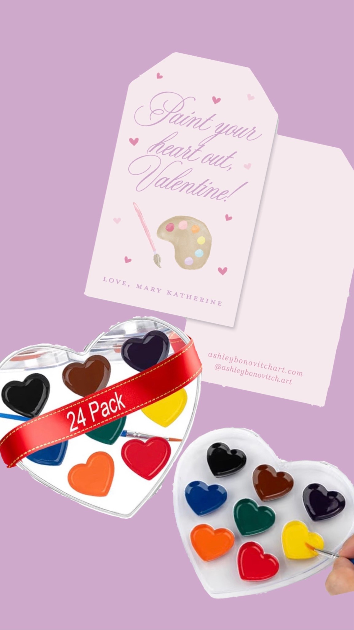 ARTLYMERS 8 Colors Heart Watercolor Paint Set, 24 Pack Washable Valentines Water Color Paint Sets... | Amazon (US)