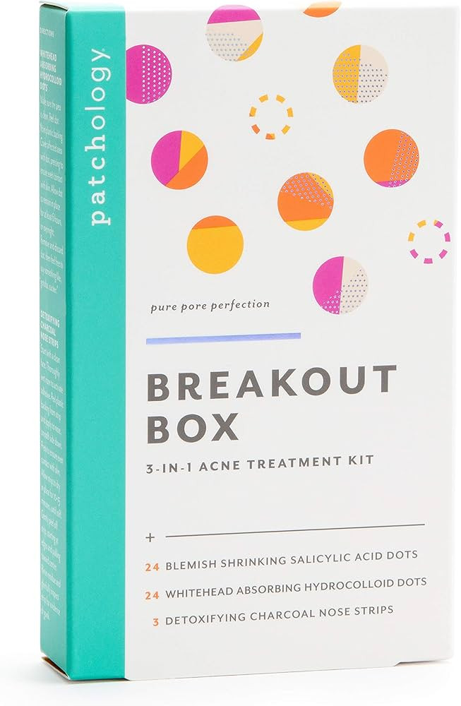 Patchology Breakout Box 3-in-1 Pimple & Acne Spots Treatment Patch Kit with 3 Nose Strips, 24 Sal...
