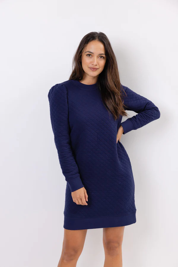 Navy Quilted Long Sleeve Dress