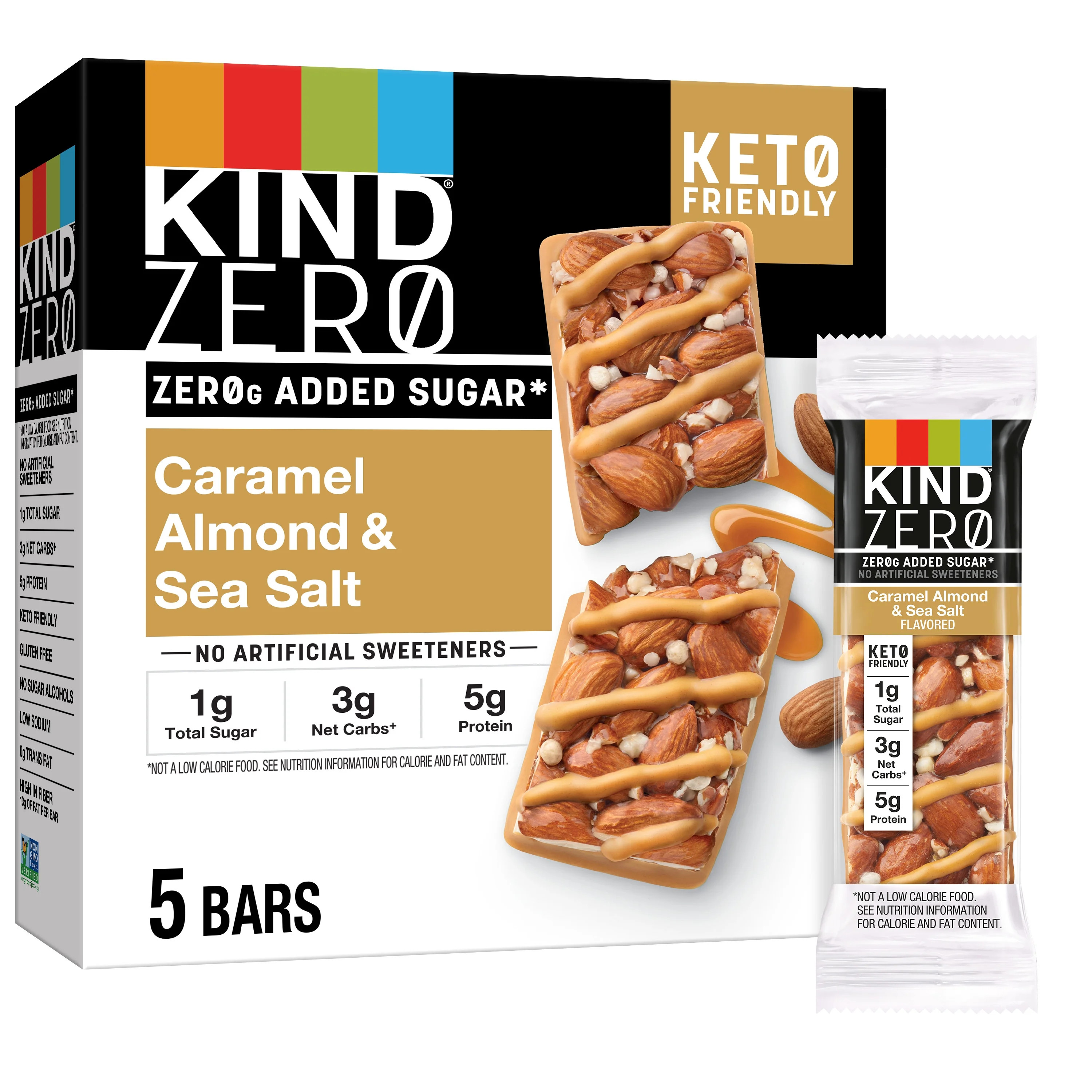 KIND ZERO Added Sugar Bars, Keto Friendly Snacks, Caramel Almond and Sea Salt Flavored, 6.2oz Box...