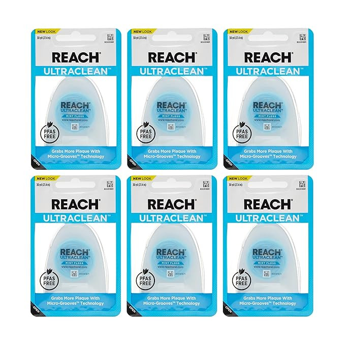 REACH Ultraclean Dental Floss, Mint, Plaque Remover for Teeth, Shred Resistant, Waxed, Easy on Gu...