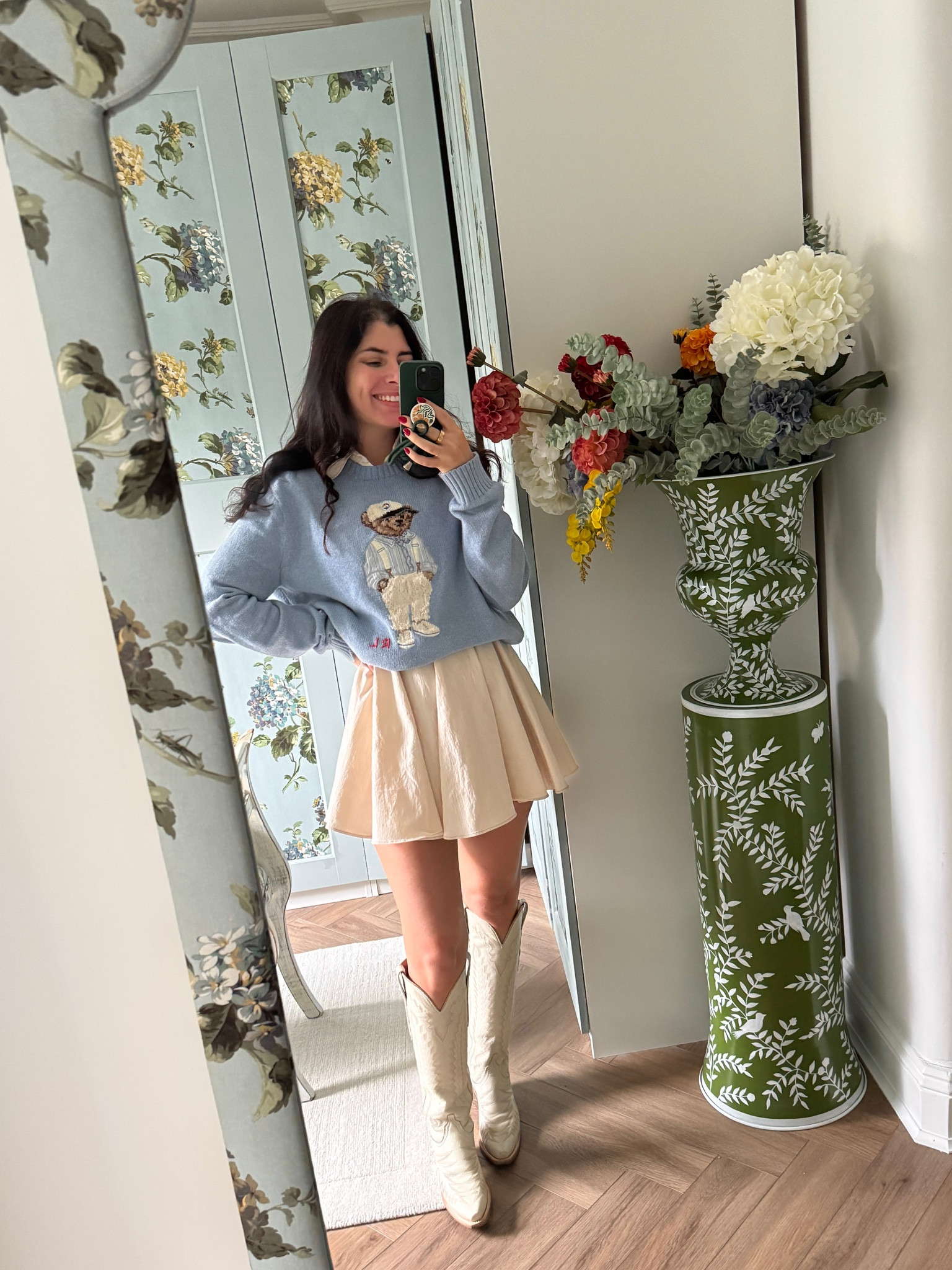 Bought this Rosie Assoulin top and skirt set on sale and this pattern is sold out but have linked the same style in the available colors (fits true to size and is a heavy material)