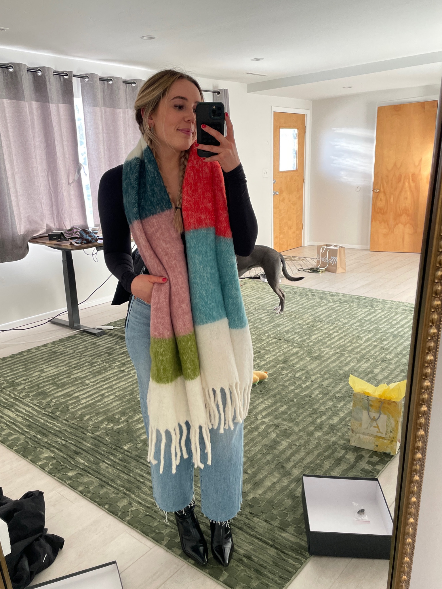 one of my top comments is asking where my earrings are from. this set is from anthropologie, and i always have the square and smaller hoops in!