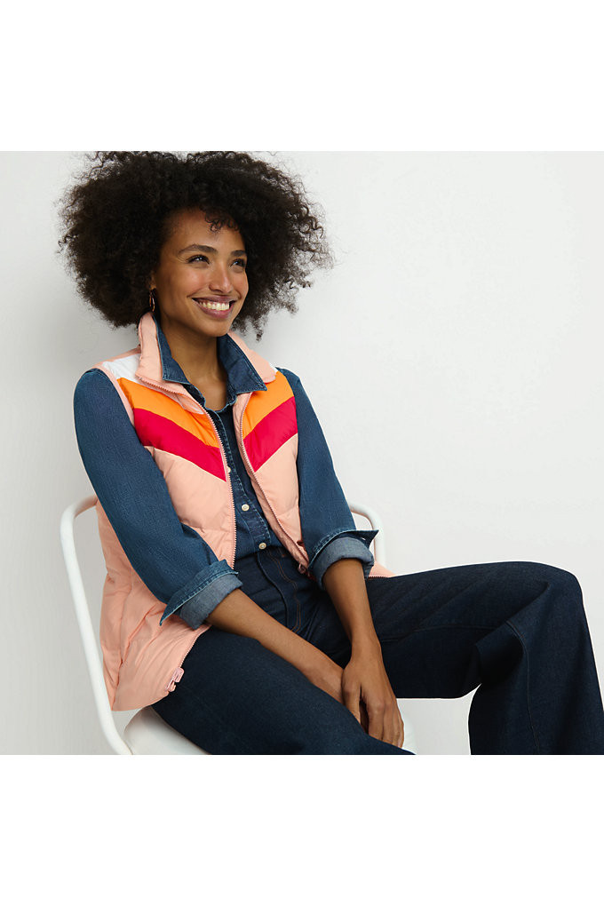 Women's Wanderweight Reversible Packable Down Vest - Lands' End - Pink - M