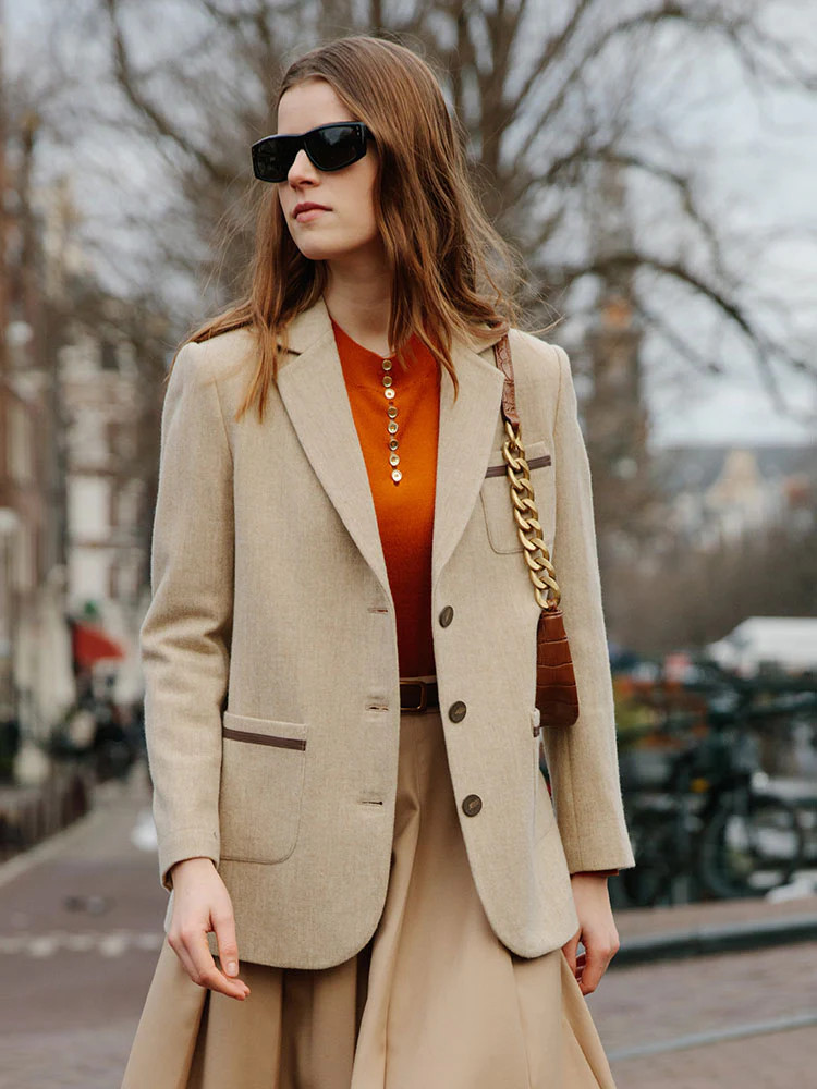 Apricot Woolen Straight Blazer