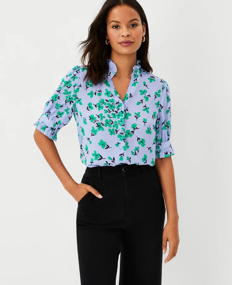 Floral Ruffle Button Top