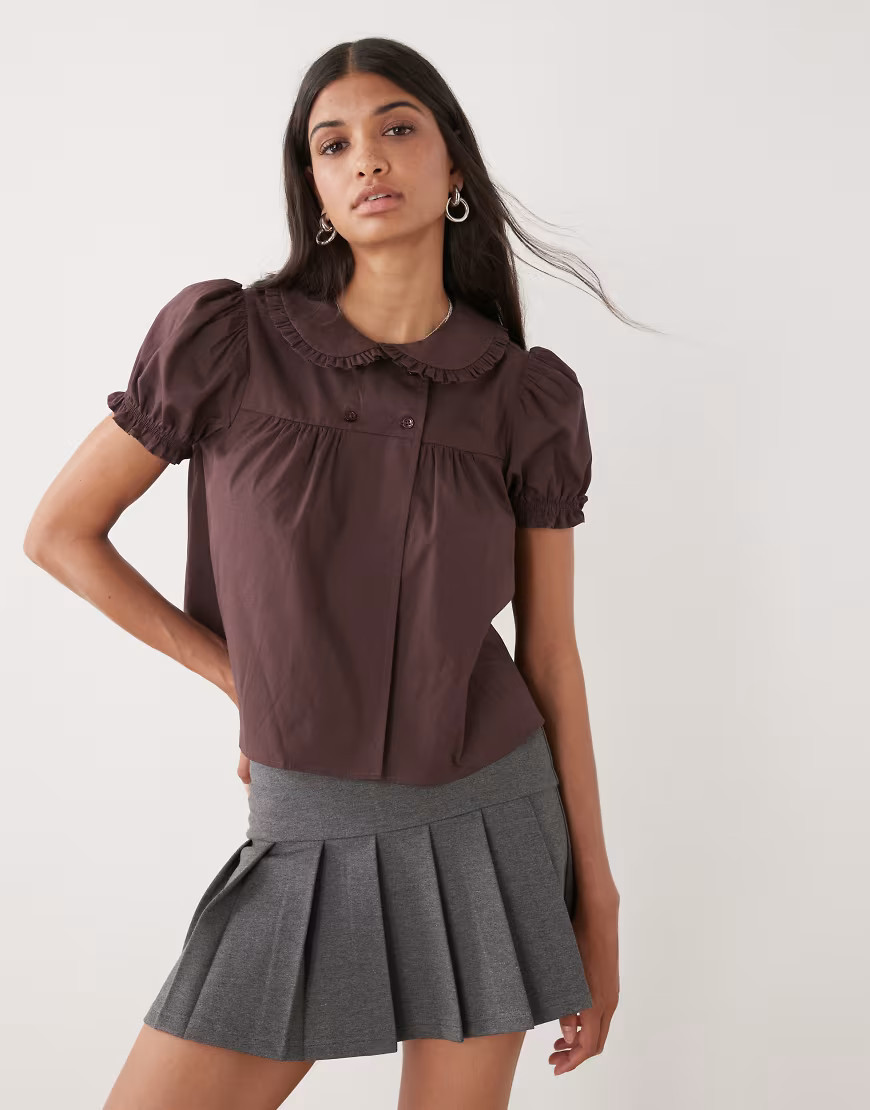 COLLUSION babydoll blouse in brown