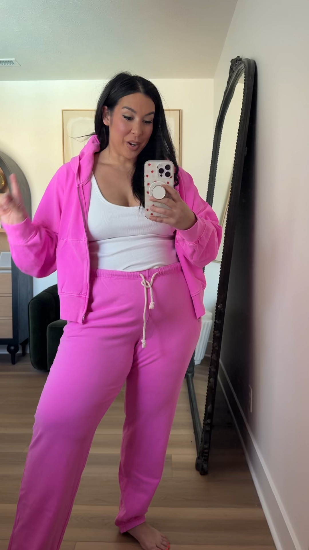 Love this casual matching set! Super comfortable and light weight! Wearing a size XL