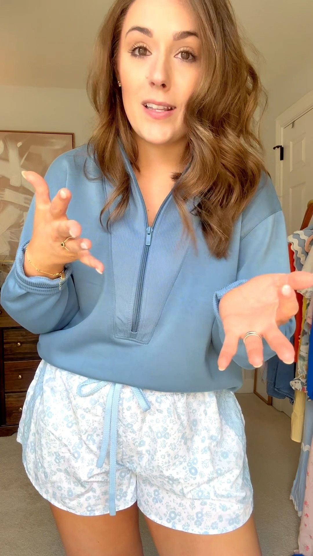 Wearing a medium in everything, but the short pink dress runs small, so consider sizing up one in it. 🙂