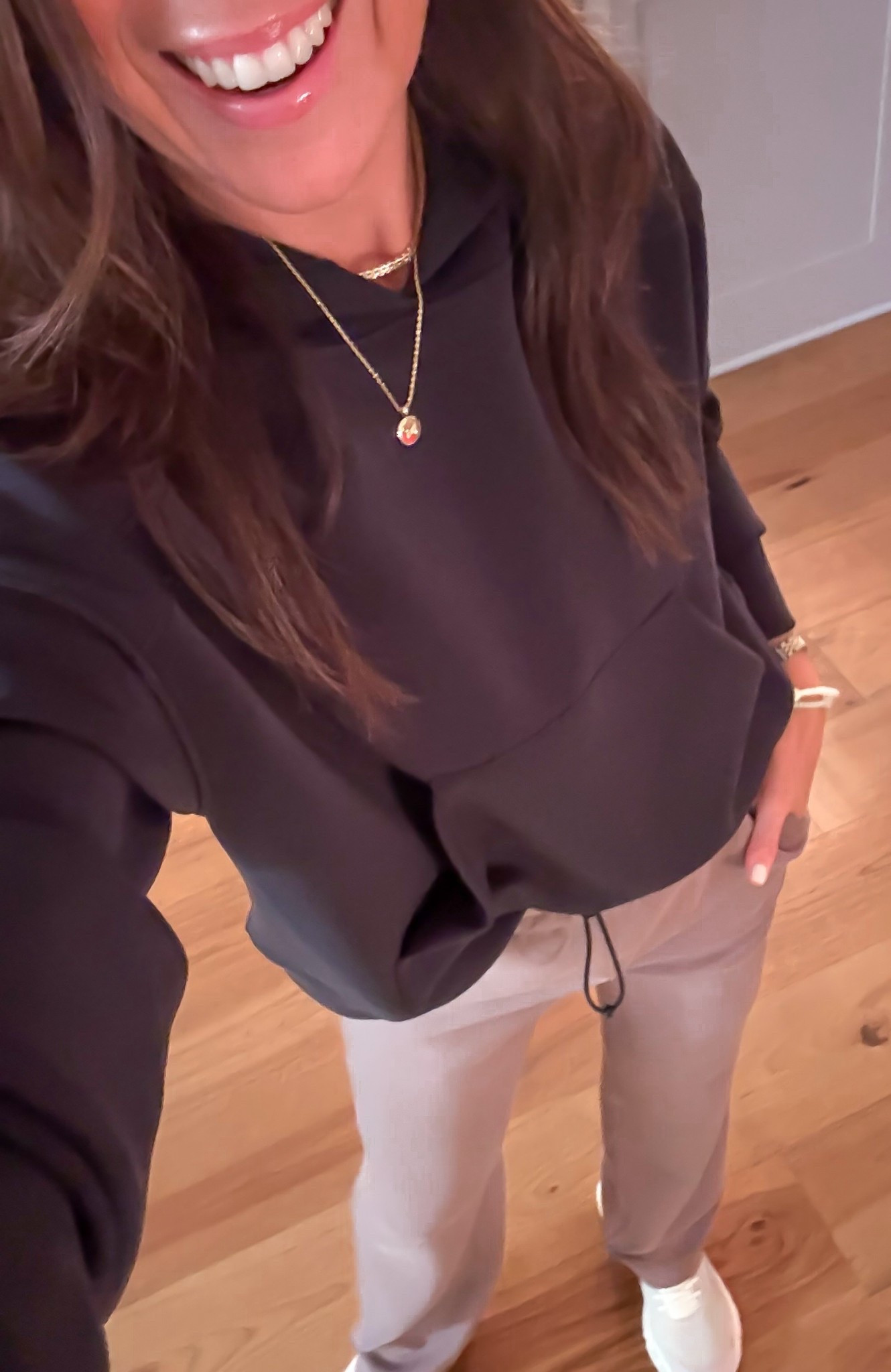 Wearing a size small but an XS would have fit better (for length, I’m 5’3)