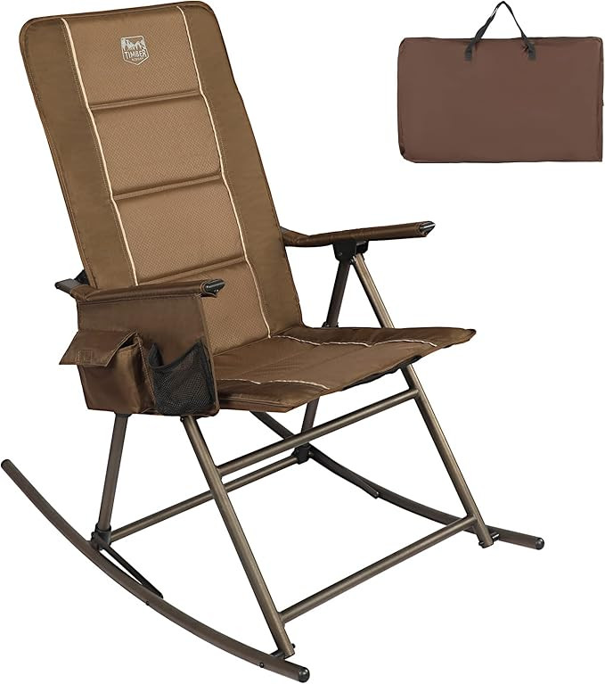 TIMBER RIDGE Folding Rocking Camping Chair, Padded High Back Outdoor Rocking Chair with Side Pock...