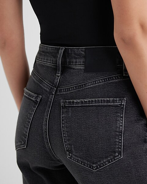 High Waisted Washed Black Relaxed Straight Ankle Jeans