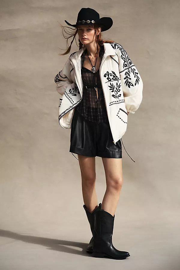 By Anthropologie Embroidered Puffer Coat
