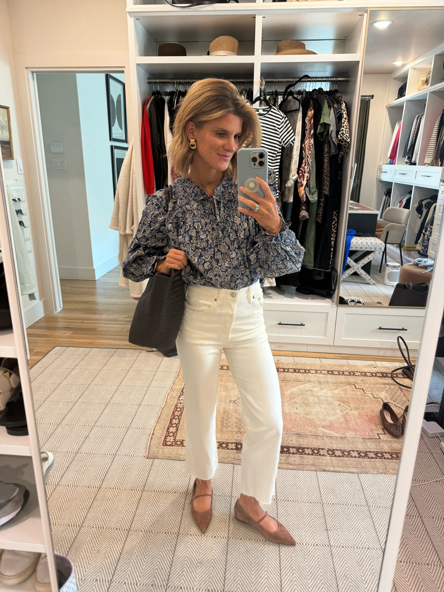 Jean on jean/denim on denim Agolde outfit w brown accessories.   Wearing TTS in jeans and XS in jacket.