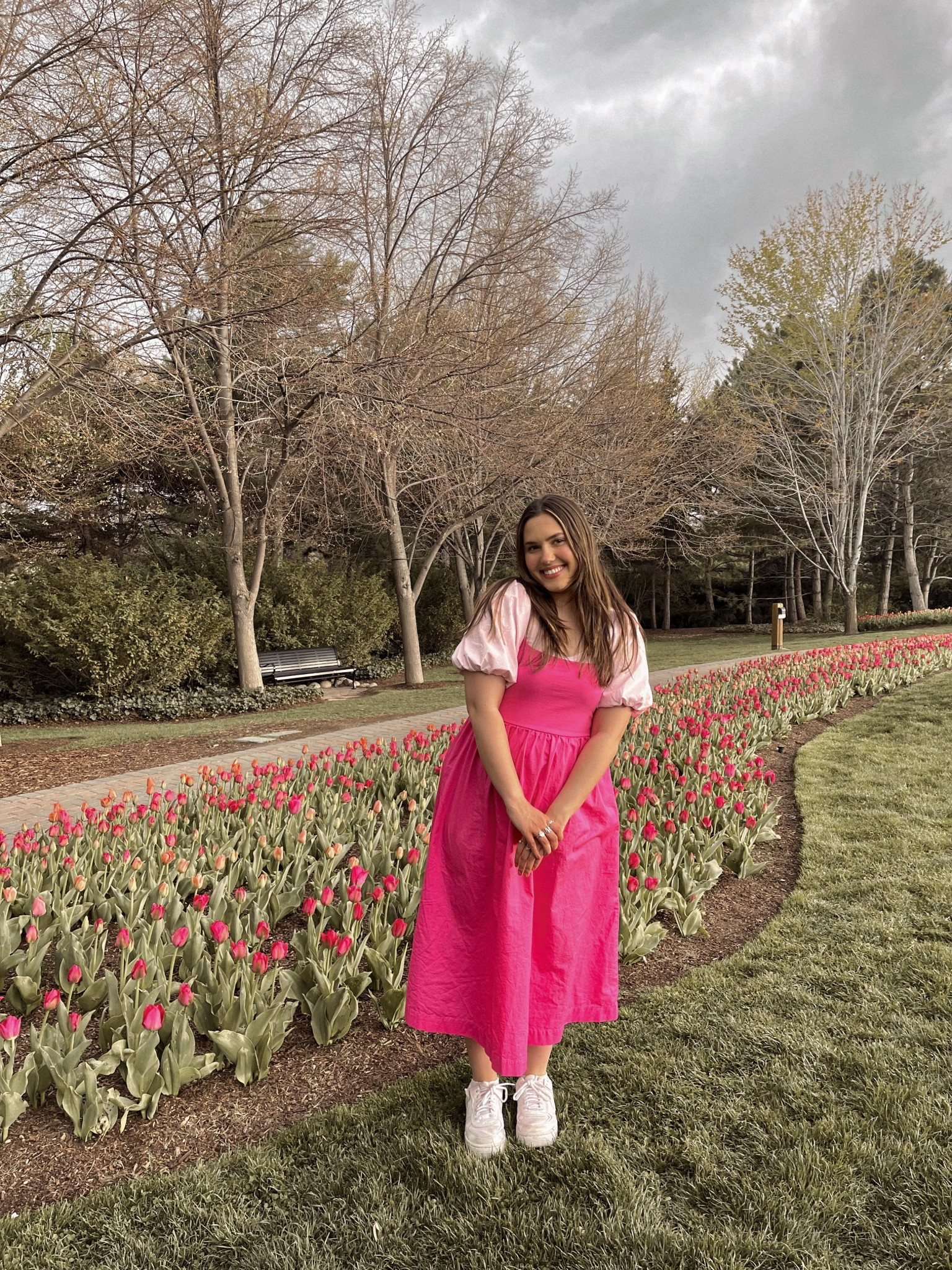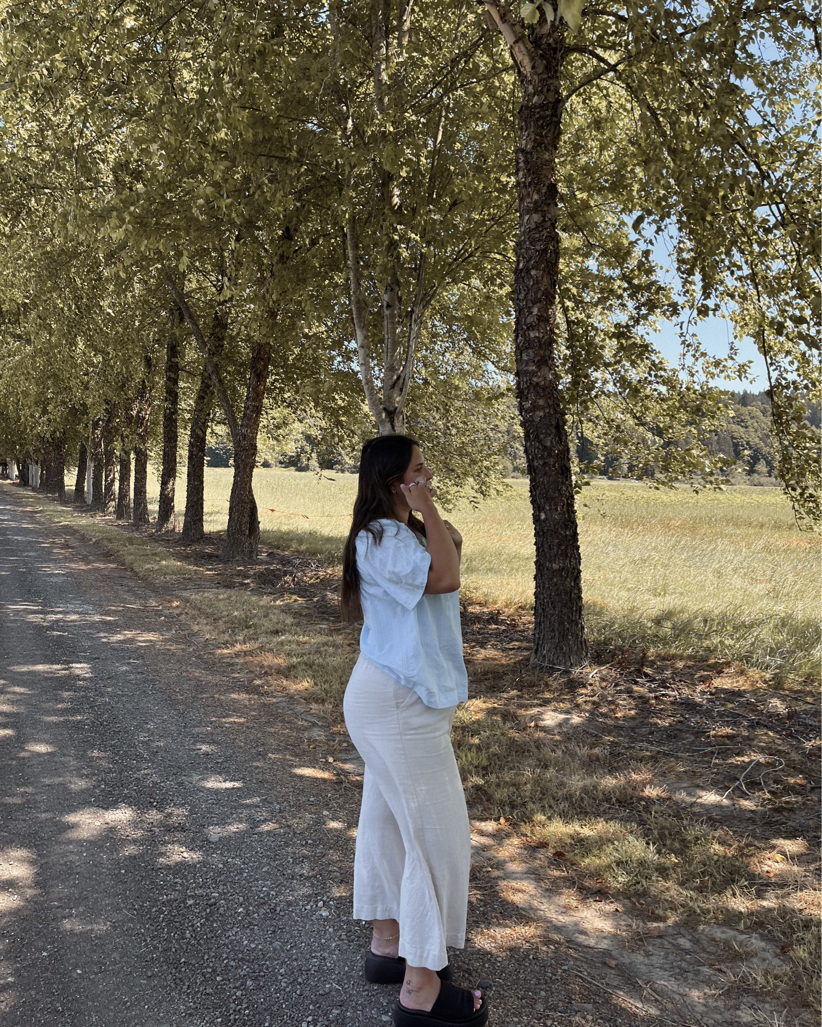 cute spring / summer outfit with green button dress (linked similar), simple tee (linked exact), and a shell necklace (linked similar)