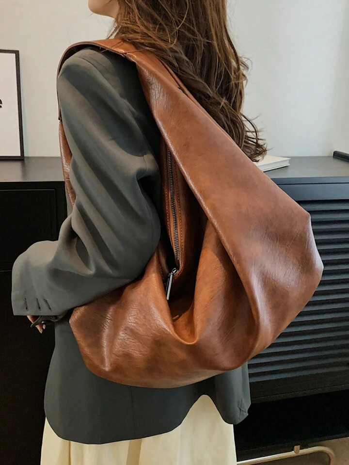 Bolsa de Ombro de Couro Macio e Simples na Moda, com Grande Capacidade, Pode Ser Usada como Bolsa...