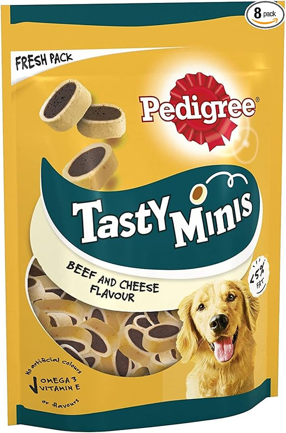 Pedigree Tasty Minis 8 x 140 g Bags, Dog Training Treats, Cheesy Nibbles with Cheese and Beef Fla...