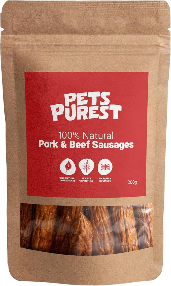 Pets Purest Natural Dog Treat Chews - 100% Healthy Air-Dried Pork & Beef Sausage Meat Treats for ...