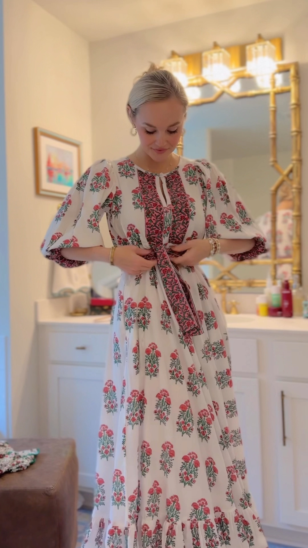 GRWM for a quick weekday date night! Spotted this colorful number & had to have it—the accordion pleats & fabulous print make it a stand out piece in my closet for Spring! Paired with affordable accessories for balance 😘💙🌺