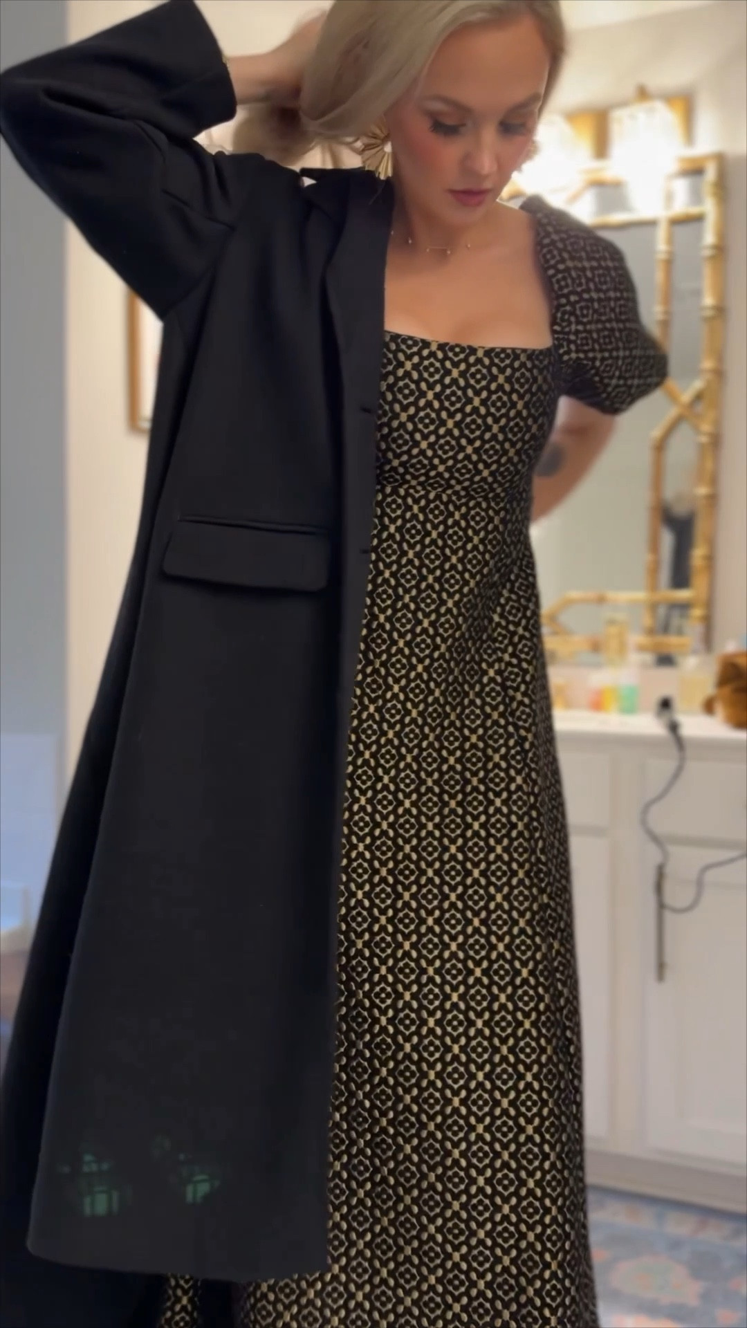 I have these kitten heels in silver & gold, they are so practical and festive at the same time. Very easy to walk in, size down if you’re a half size. I’m a 6.5 but take the 6 in these! Also linked  look for less pair in related products