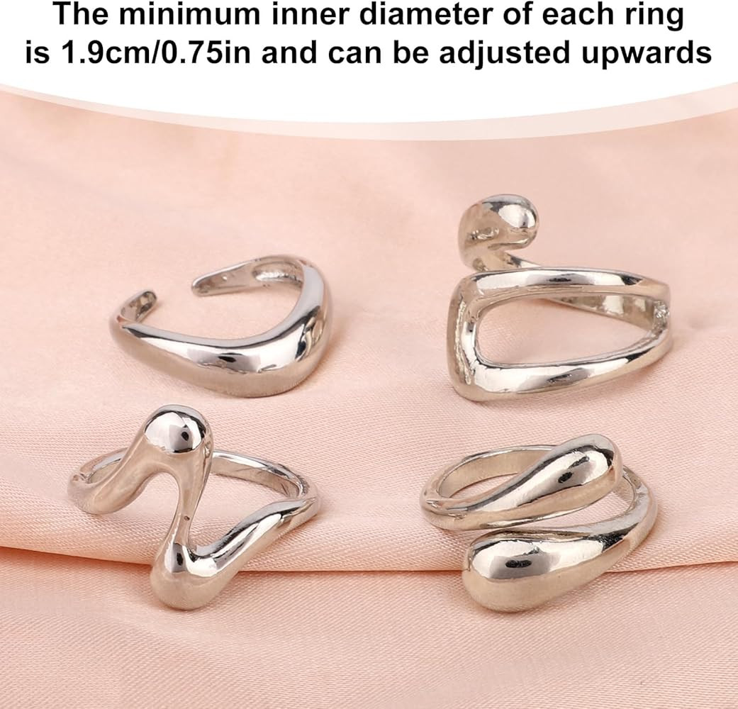 Chunky Silver Rings Set for Women, Alloy Adjustable Bold Stackable Statement Bands Trendy Wide Ir...