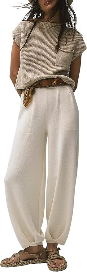 Lentta Women's 2 Piece Sweater Sets Outfits Knit Pullover Tops High Waisted Pants with Pockets