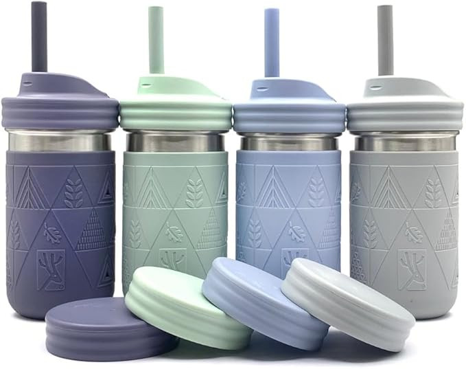 Elk and Friends Kids & Toddler Cups | The Original Glass Mason jars 8 oz with Silicone Straws wit...