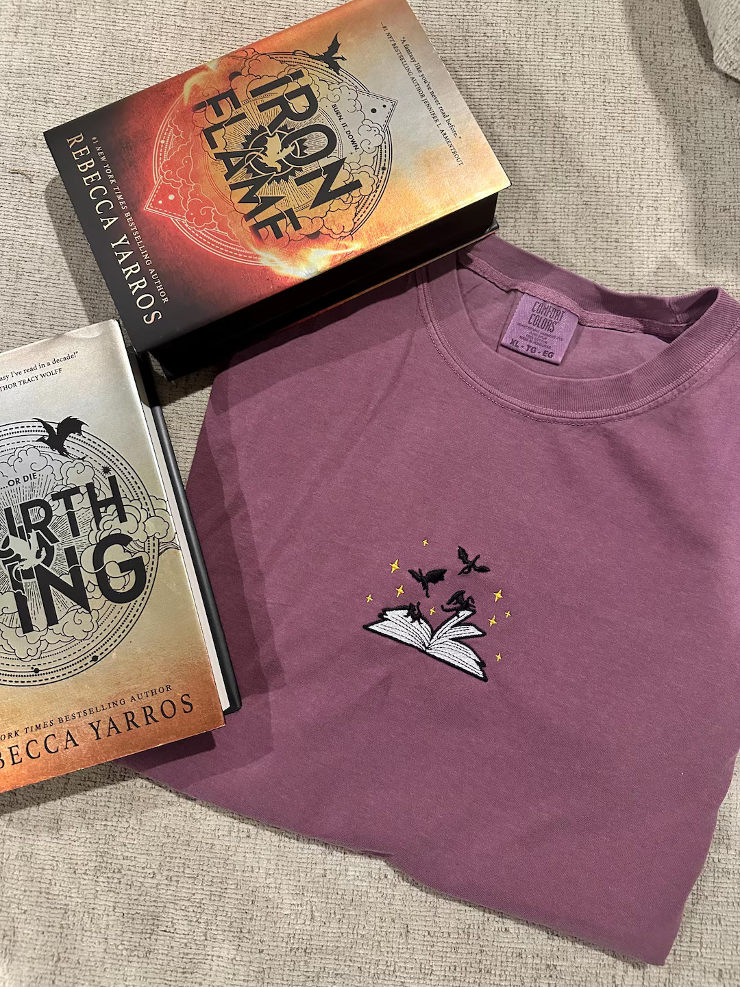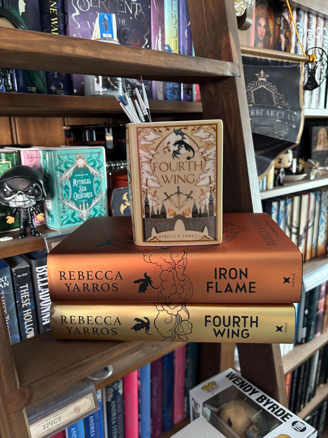 Merch based on Rebecca Yarros’ fantasy book series, Fourth Wing and Iron Flame