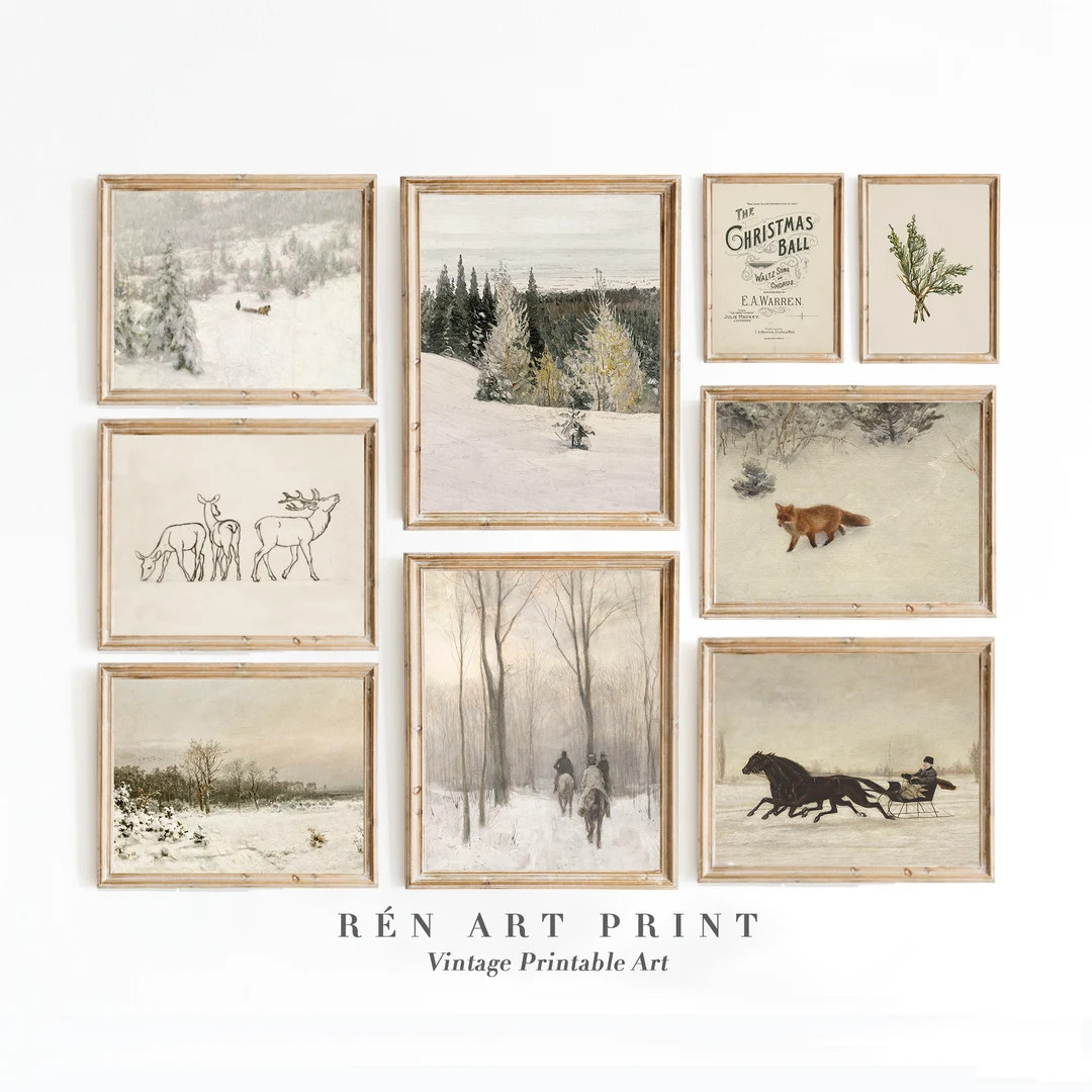 Vintage Winter Prints | Holiday Gallery Wall Prints | Snowy Landscape Painting Printable| Neutral...