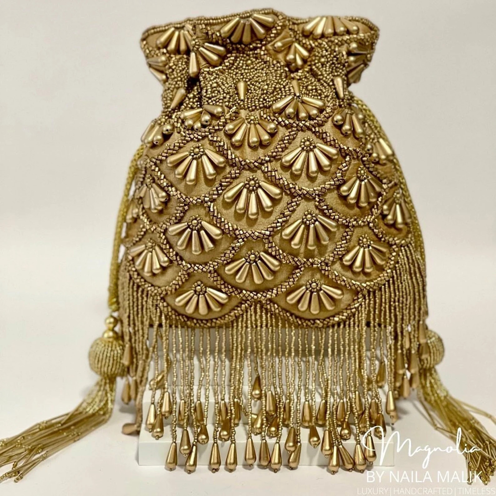 Gold Potli Bag With Bead Work and Gold Embellishment | PRE ORDER - Etsy