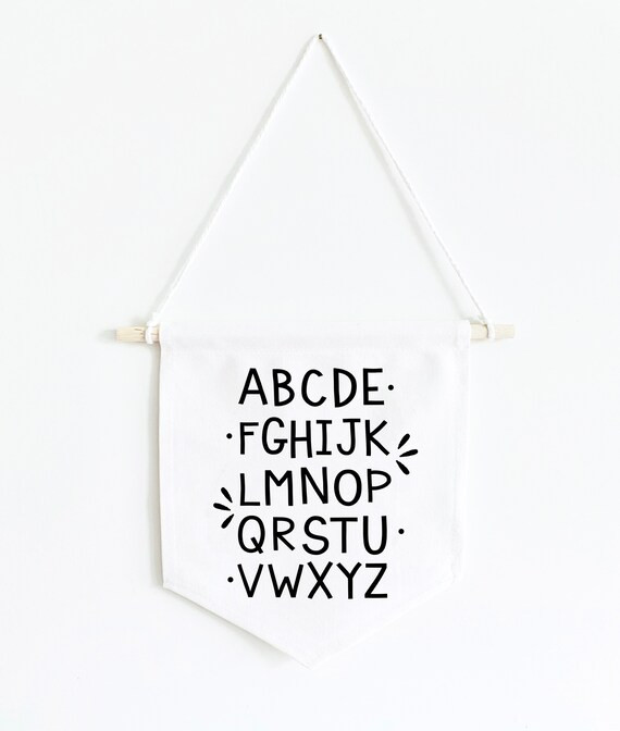 Alphabet Wall Art, Canvas Banner, Playroom Alphabet Wall Decor, Canvas Wall Hanging, Letters Sign