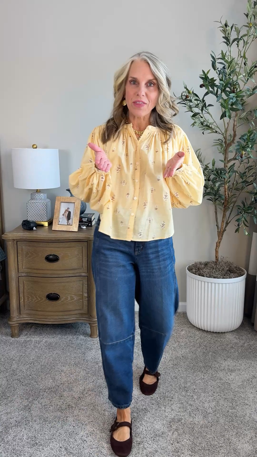 In LOVE with this corduroy skirt Wearing 4. Small top Blouse has the cutest smocking at the neck and will be a great layering piece as it gets colder. Add tights to the skirt and a ballet flat Or wear with sneakers #LTKOver40 #LTKWorkwear #LTKStyleTip