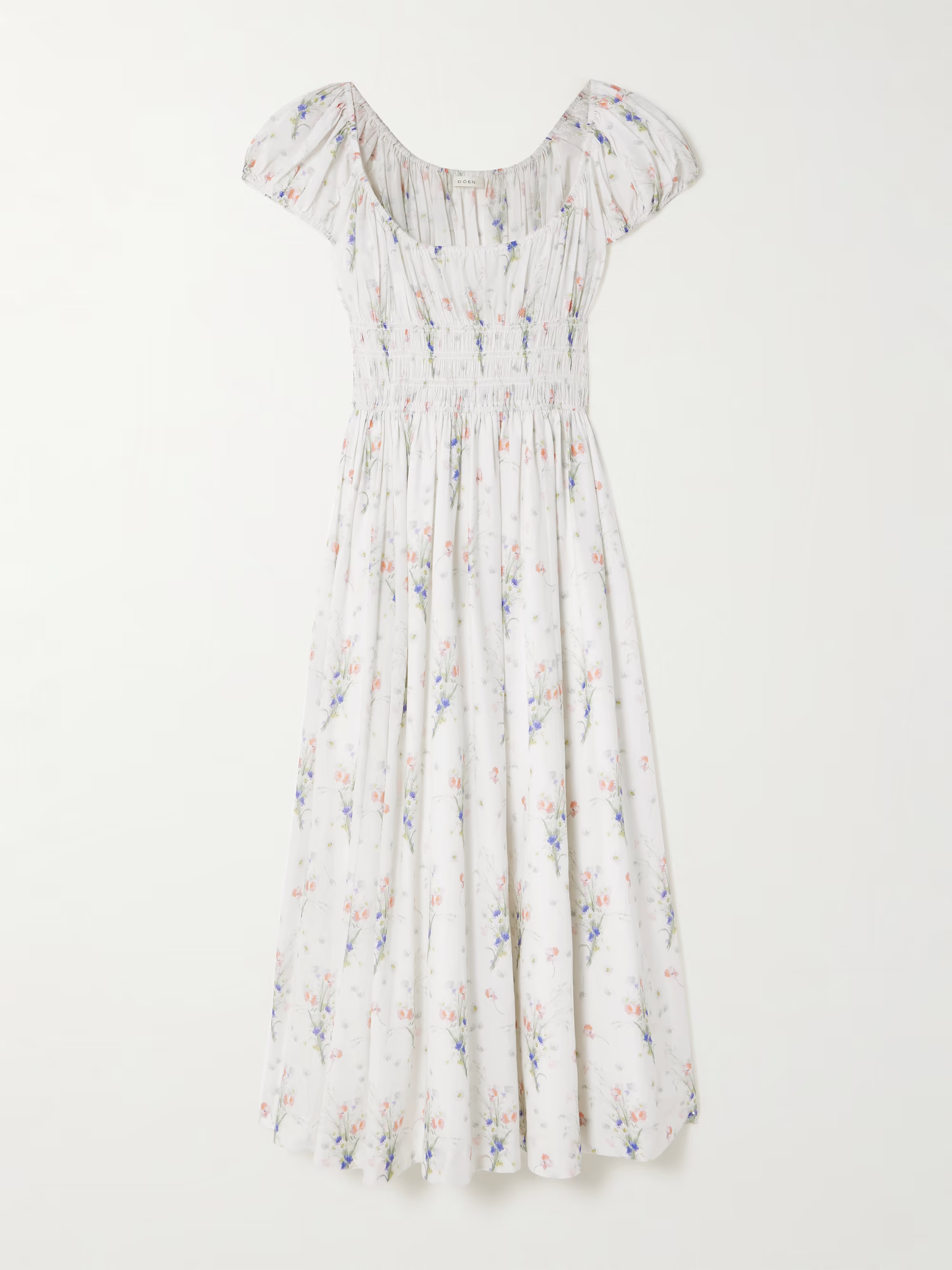 Quinley shirred floral-print organic cotton midi dress