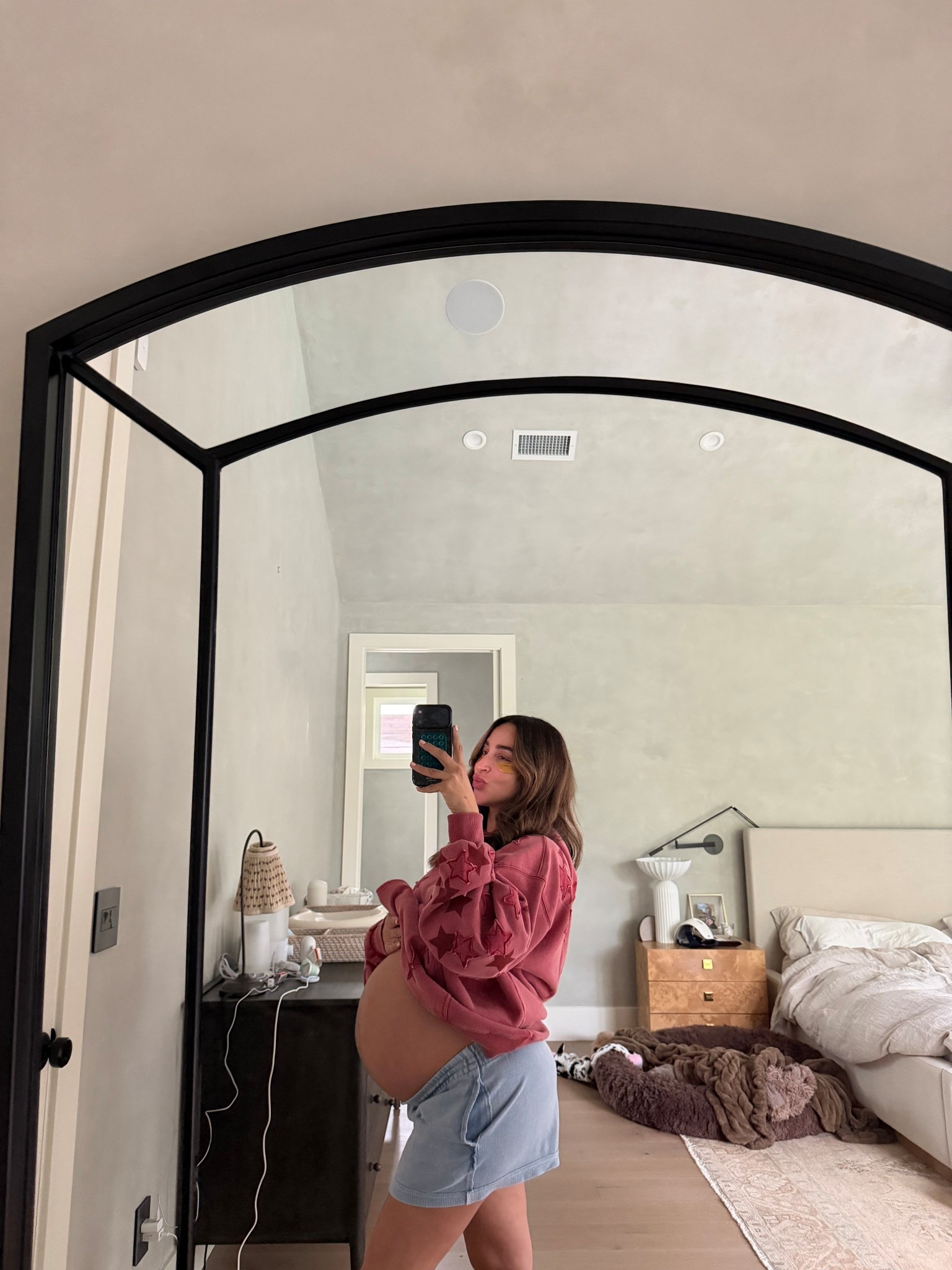 Wearing a medium in all! Go with your true size if not pregnant
