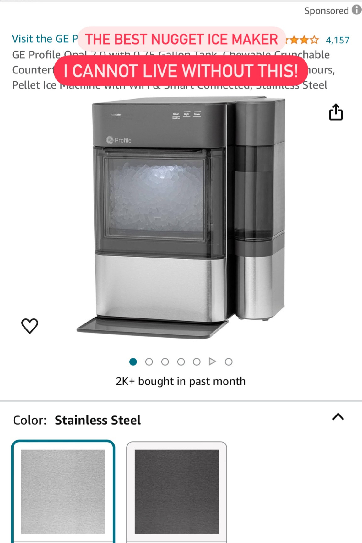 GE Profile Opal 2.0 | Countertop Nugget Ice Maker with Side Tank | Ice Machine with WiFi Connecti... | Amazon (US)