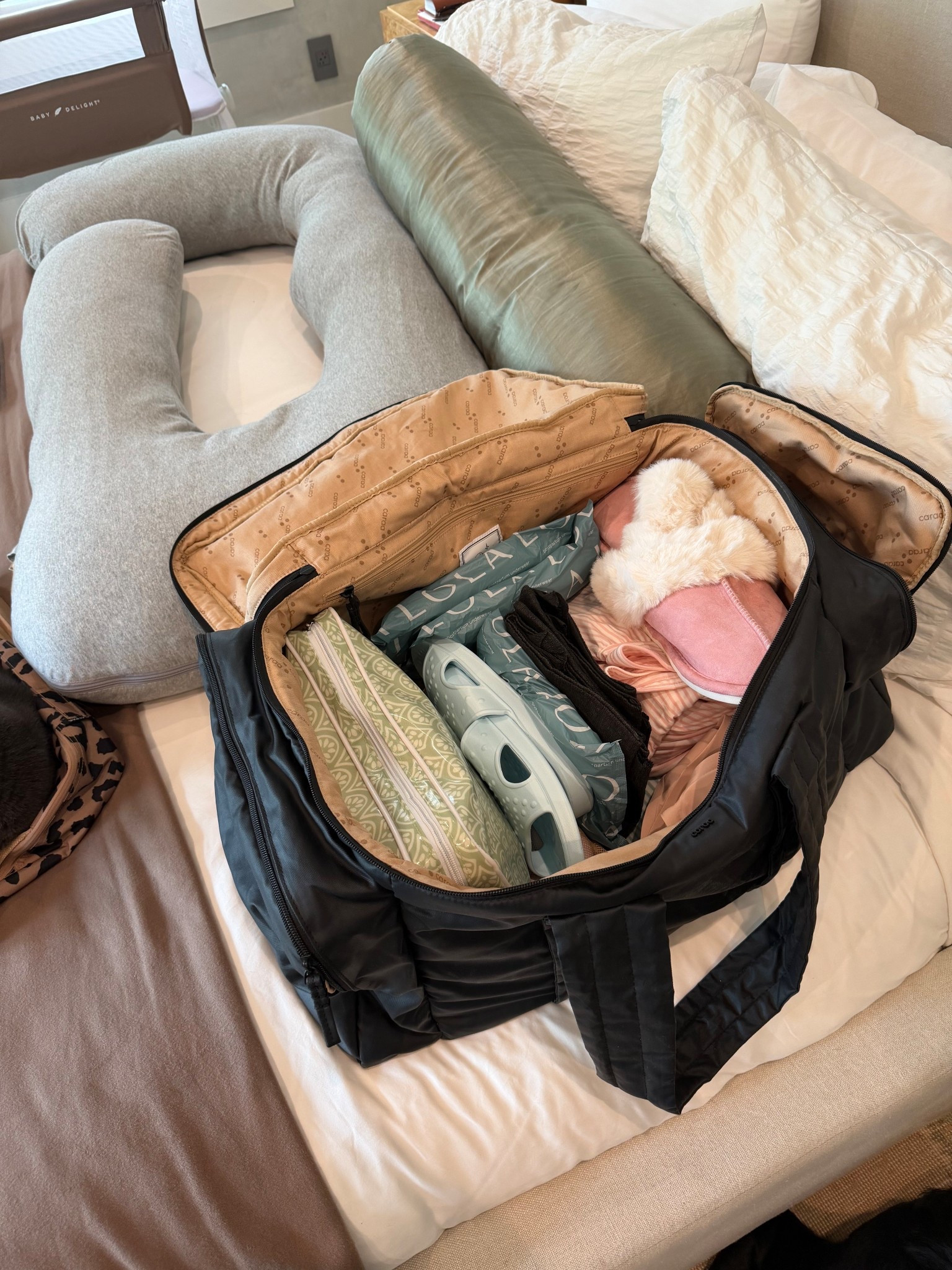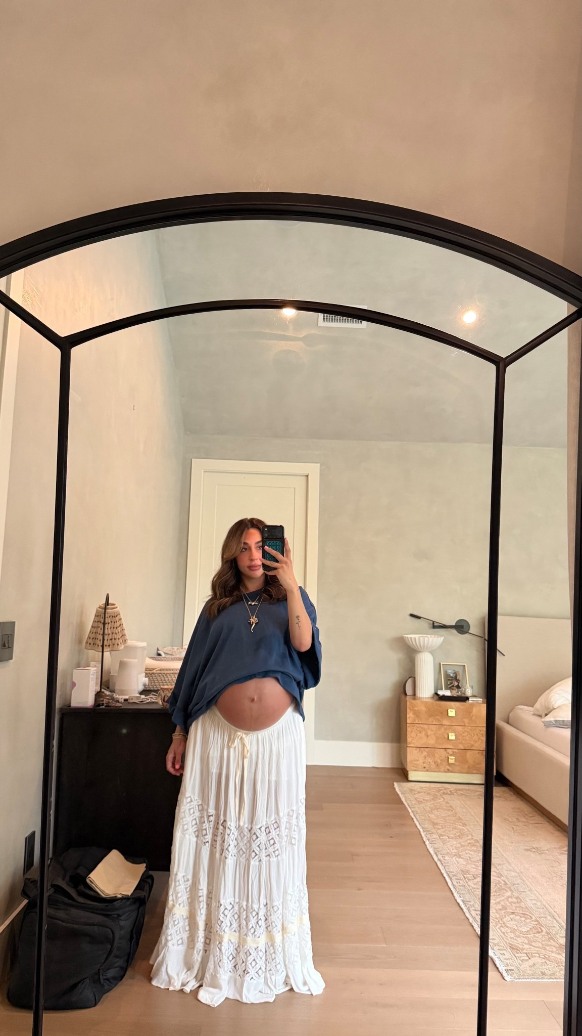 Wearing a medium in all! Go with your true size if not pregnant