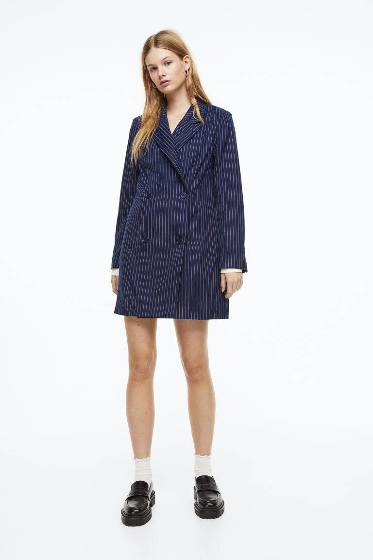 Double-breasted blazer dress - Navy blue/Pinstriped - Ladies | H&M GB