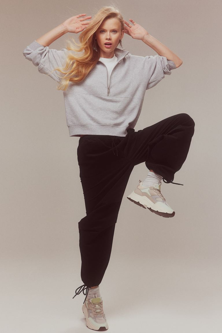 Corduroy parachute trousers - Black - Ladies | H&M GB