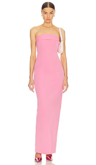 Tech Gabardine Long Strapless Dress in Very Pink Maxi Dress Hot Pink Gown Pink Strapless Dress