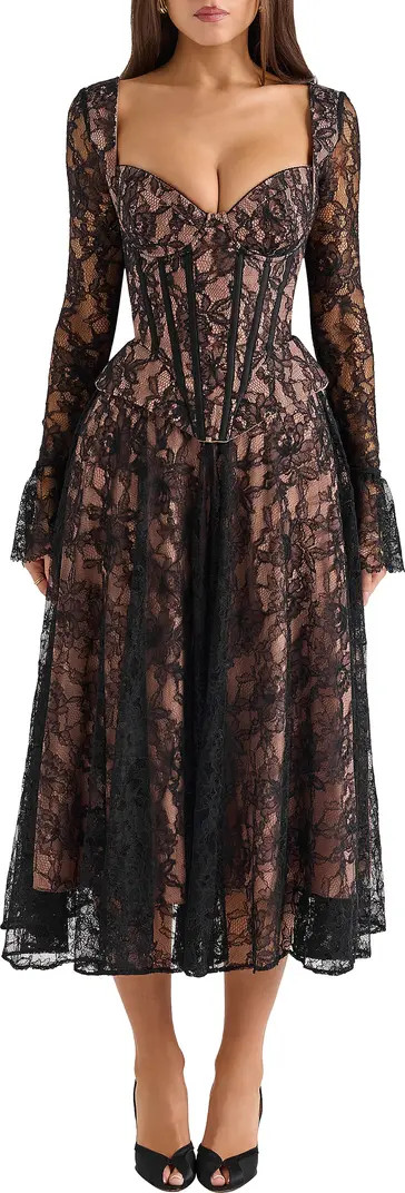 HOUSE OF CB Raquel Long Sleeve Lace Corset Dress | Nordstrom
