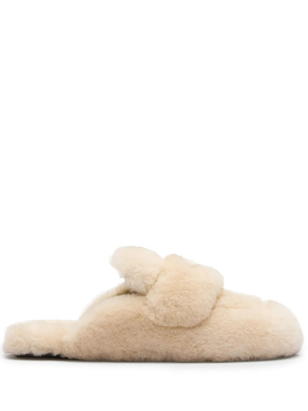 triangle-logo shearling mules